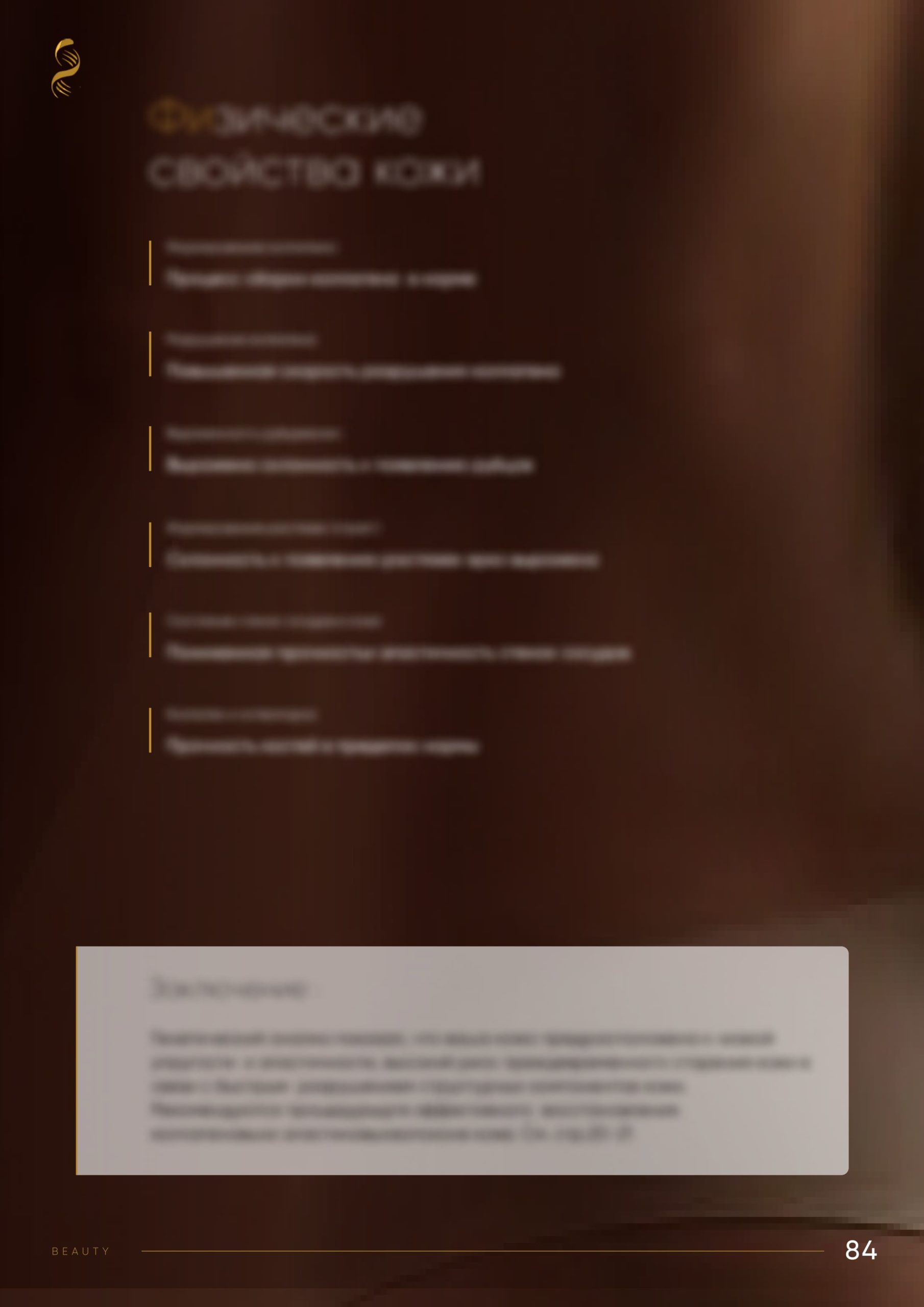 ДНК анализ показывает, каких питательных элементов не хватает вашей коже и вашим волосам. Эти вещества могут вырабатываться в малых количествах в организме, и их необходимо восполнять косметическими средствами и продуктами питания. У каждого человека этот набор веществ индивидуален, поэтому для получения максимального эффекта от косметики и косметологических процедур мы рекомендуем пройти наш генетический тест для красоты в Шилке.